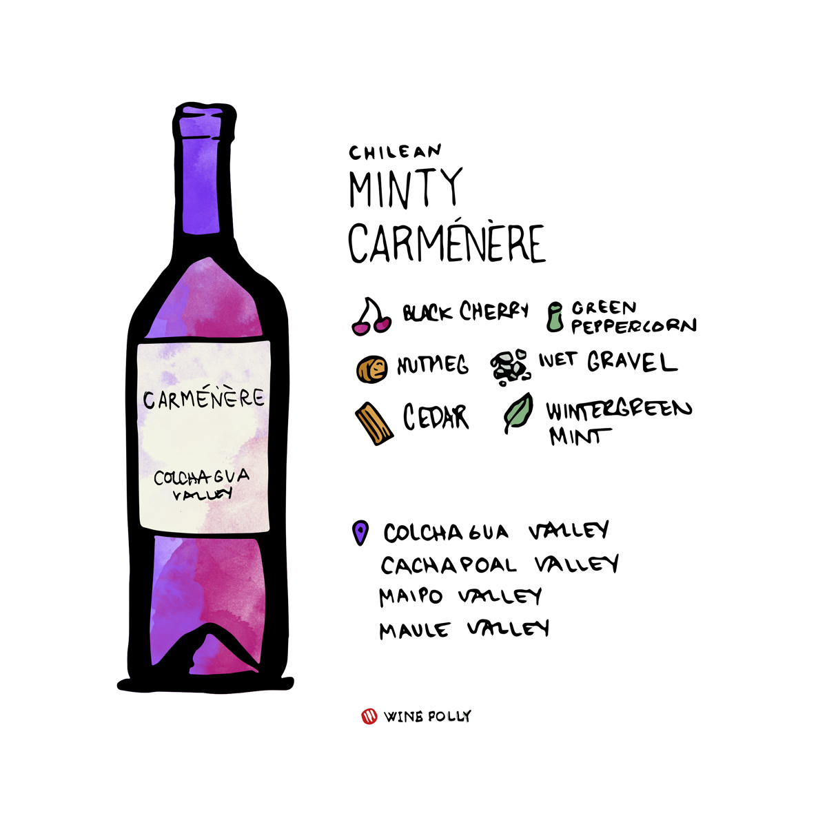 Of course, growing great Carménère took a while to figure out. There used to be two predominant styles: an oaky-chocolaty style and a green, peppery style. Today, you’ll find high end Carménère to deliver more pure black cherry and herbal tones supported by subtle use of cedar-spiced oak.