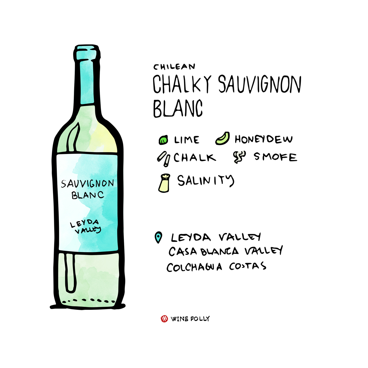 The regions of Casablanca and Leyda Valleys deliver Sauvignon Blanc wines with notable salinity and herbal flavors. They’re much closer (in style) to Loire Valley than New Zealand, with less sweet fruit and a leaner, more crystalline structure.