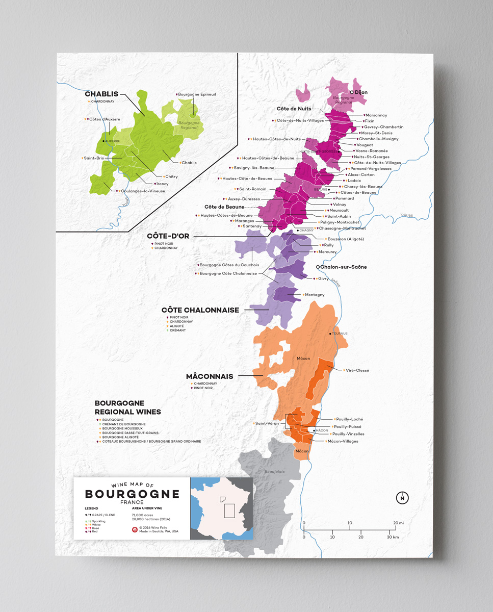12x16 France Burgundy (Bourgogne)  wine map by Wine Folly