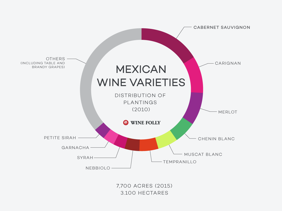 Due to the fast growth of Mexico’s wine country, sources tell us that Cabernet Sauvignon, Chardonnay and Tempranillo are now the most planted wine grapes of Mexico.