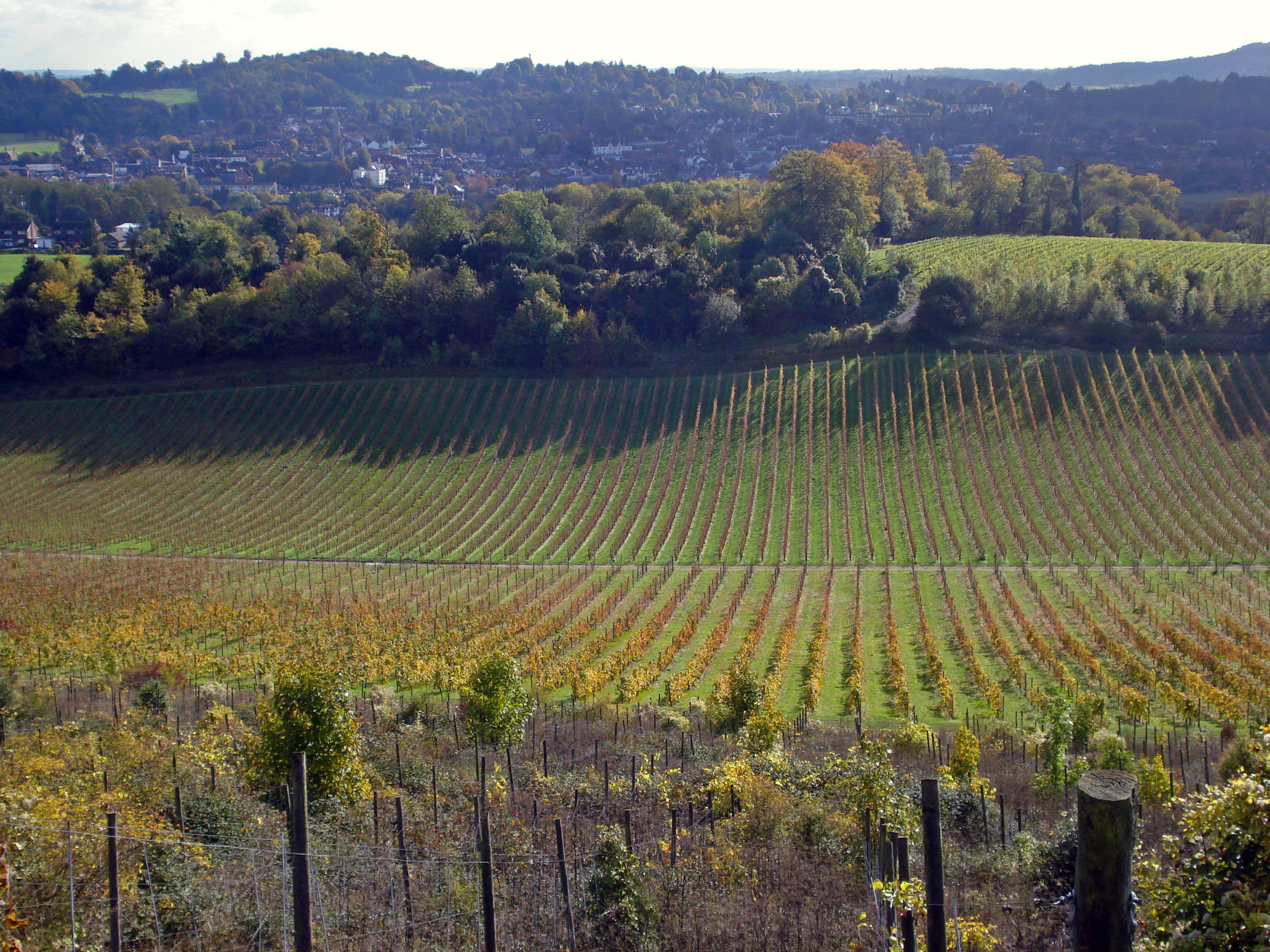 Surrey, too, has chalky soils made up of the remains of ancient marine fossils. It is the site of the second Champagne house investment in England. Pommery and Hattingley Valley have entered into a partnership. Surrey is also home to one of Englandâs largest producers, Denbieâs Estate, which boasts Blightyâs biggest vineyard, the eponymous Denbies Vineyard.