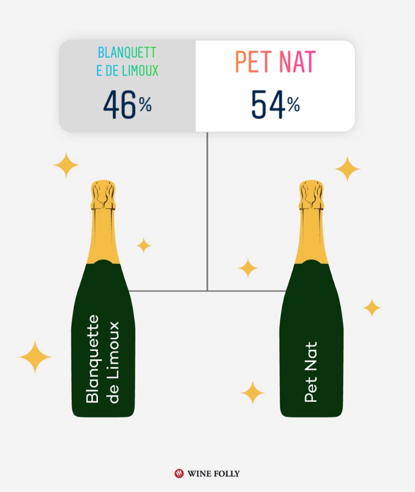 This was a photo finish that we weren’t expecting with Pét-Nat winning by a hair! Blanquette de Limoux is relatively unheard of and Pét-Nat (Pétillant Naturel) is very fashionable at the moment. The sheer diversity and sometimes funkiness of some Pét-Nat wines, along with their funky labels, is perhaps what nudged it over the edge.