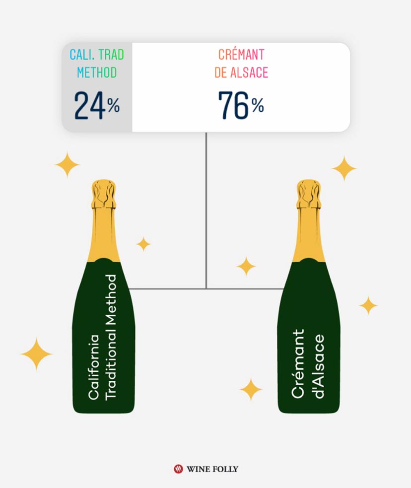 This was another surprise for us here at Wine Folly! We thought California Traditional Method Sparkling wines would take the cake with their lemon, peach, nutty and toast flavors, but in the end the Crémant won out.