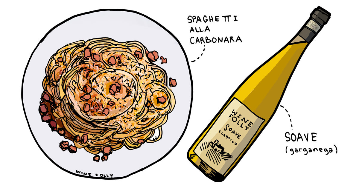 - Why it works: In addition to a nice bit of acidity that slices its way through fat, Soave’s got an unexpected bit of salinity to it, as well.