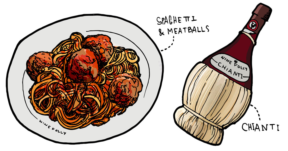 - Why it works: There is absolutely no reason to get too complicated when it comes to spaghetti and meatballs. It’s a quintessential Italian dish, so go with the date you brought to the prom with a quintessential Italian wine.