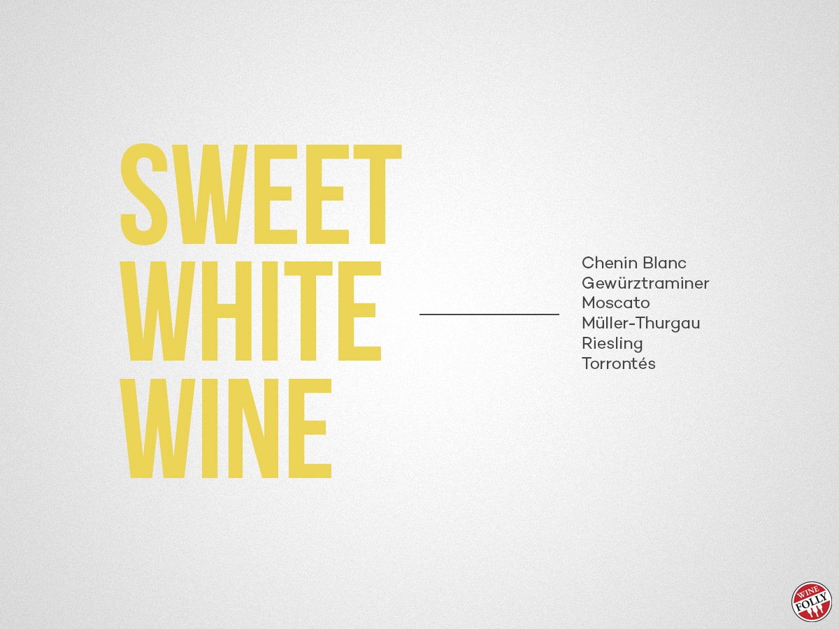- Muscat Blanc (a.k.a. Moscato) (usually sweet, made occasionally in a dry style)