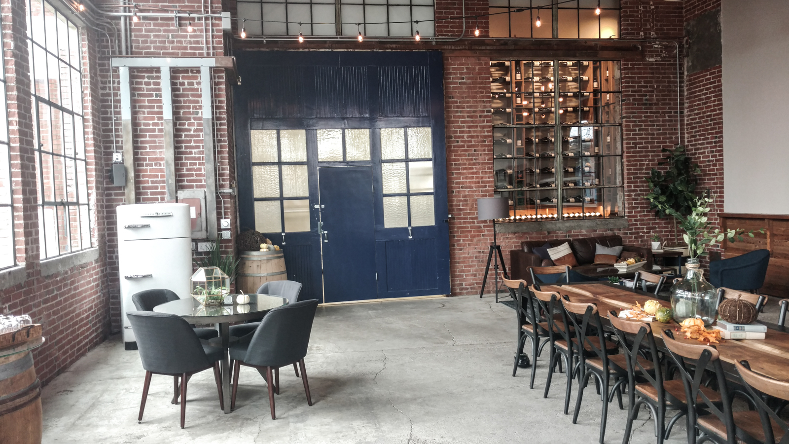 Old timber barn in McMinnville’s Granary District, home to Flag & Wire.