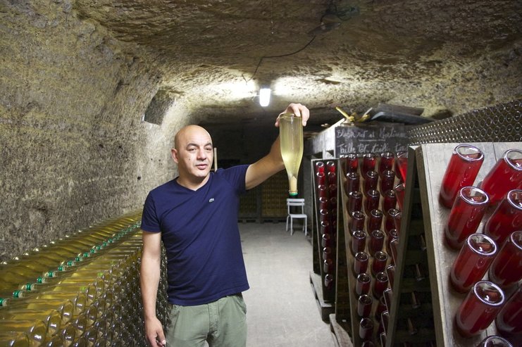Moses Gadouche of Les Capriades shows us some lees. This Pétillant Natural from Touraine (Loire) is declassified to a “vin de France” because it doesn’t follow the rules. Read more at Selection Massale