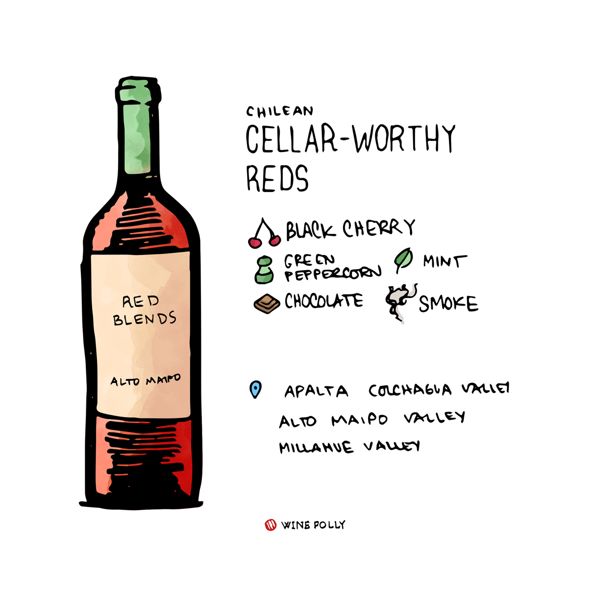 For cellar-worthy selections, look for Cabernet and Cabernet blends from the best spots in Colchagua and Maipo Valley. There are two Chile-original blends you will not want to miss: