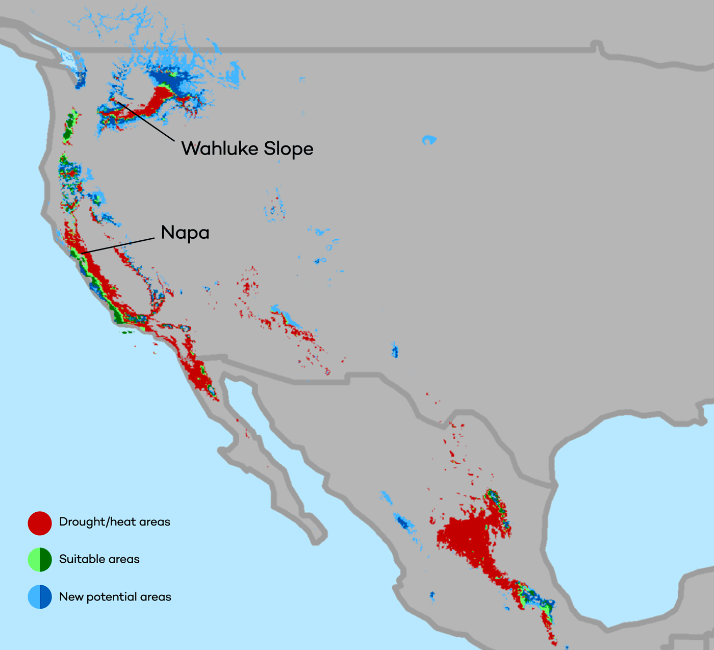 The world’s most important wine regions, like Napa, Bordeaux, Burgundy, Walla Walla, Rioja, Douro, Barossa and Stellenbosch, are on an irreversible course towards excessive summer heat and drought.
